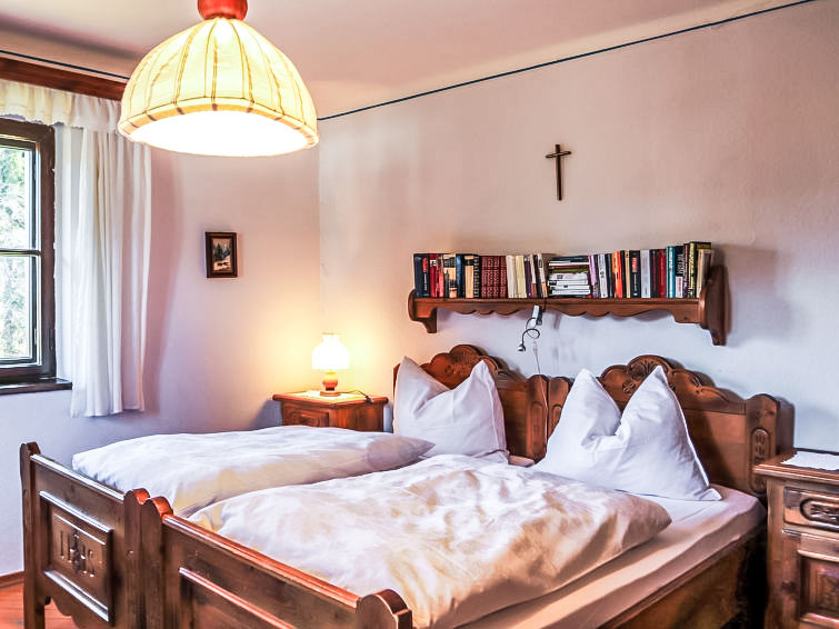 5-room house 120 m2 on 2 levels. Tasteful and cosy furnishings: 1 double bedroom with hand-basin. Large living room with cable TV (flat screen), tiled stove. Exit to the garden, to the terrace. Shower, sep. WC. Upper floor: dining room with Scandinavian wood stove, dining nook and radio. 1 double bedroom. 1 room with 2 beds and hand-basin. Kitchen (oven, dishwasher, 4 ceramic glass hob hotplates, microwave). Sep. WC. Electric heating. Wooden floors. Balcony, terrace. Terrace furniture, deck chairs. Very beautiful view of the mountains and the countryside. Facilities: Internet (WiFi, free). Please note: non-smoking house. Maximum 1 pet/ dog allowed. Smoke alarm. 50336-000849-2020