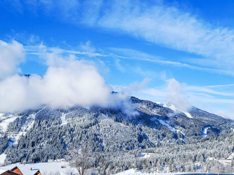 "Top A", 1-room apartment 39 m2, on the ground floor. Bright, partly renovated in 2024, cosy furnishings: entrance hall. Living room with 2 fold-away beds, dining table and cable TV (flat screen). Exit to the balcony. 1 room with 2 beds. Small kitchen (3 hot plates, toaster, freezer, electric coffee machine). Shower/WC. Heating. Balcony 10 m2. Balcony furniture. Very beautiful panoramic view of the mountains and the countryside. Facilities: hair dryer. Parking. Please note: non-smokers only, non-smoking house. Beautiful location, ideal starting point to explore the Ski Amadé world. 50415-006730-2020