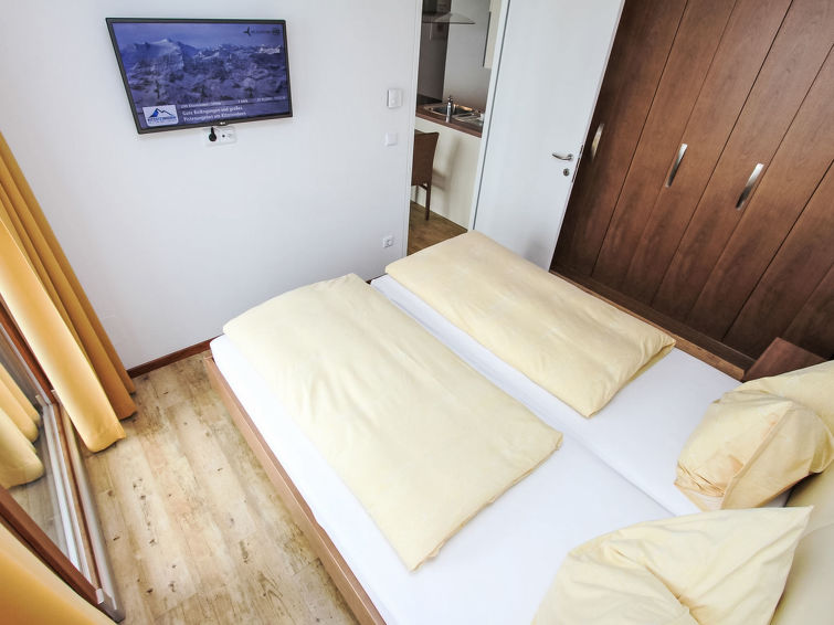 2-room apartment 40 m2. Bright, tasteful and cosy furnishings: 1 double bedroom with satellite TV (flat screen). Living/sleeping room with 1 double sofabed, dining table and satellite TV (flat screen). Luggage room. Open kitchen (oven, dishwasher, 4 ceramic glass hob hotplates, toaster, kettle, microwave, electric coffee machine, Capsules for coffee machine (Nespresso) extra). Bath/bidet/WC. Underfloor heating. Large balcony. Balcony furniture. Very beautiful panoramic view of the mountains. Facilities: hair dryer. Internet (WiFi, free). Please note: non-smokers only. Maximum 1 pet/ dog allowed. Smoke alarm. The property is one of a type of property or apartment. 50616-001123-2020