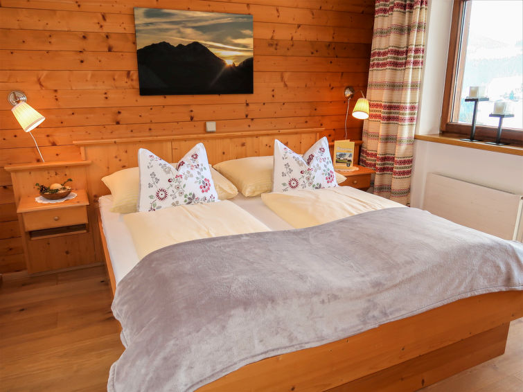 "Gratlspitz", 2-room apartment 35 m2 on 1st floor. Spacious and bright, beautiful and cosy furnishings: 1 double bedroom with 1 double bed (180 cm, length 200 cm). Exit to the balcony. Large kitchen-/living room (oven, dishwasher, 4 ceramic glass hob hotplates, toaster, kettle, microwave, electric coffee machine) with dining nook and satellite TV (flat screen). Exit to the balcony. Shower/WC. Heating. Wooden floors. Balcony. Balcony furniture, sitting area. Marvellous view of the mountains, the valley and the resort. Facilities: Internet (WiFi, free). Please note: smoke alarm.