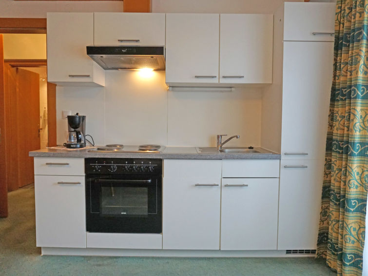 2-room apartment 35 m2, north facing position. Modern and cosy furnishings: living/sleeping room with 1 double sofabed, dining table and satellite TV. 1 double bedroom. Kitchenette (4 hot plates, oven). Shower/WC. Balcony. Facilities: telephone, safe, hair dryer. Internet (WiFi, free). Please note: maximum 1 pet/ dog allowed. Smoke alarm.