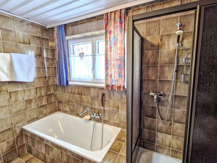 "Daheim – Bergliebe", 4-room apartment 110 m2 on 1st floor. Rustic and cosy furnishings: 2 double bedrooms. Exit to the balcony. 1 double bedroom. Kitchen-/living room (oven, dishwasher, 4 ceramic glass hob hotplates, toaster, kettle, microwave, electric coffee machine) with dining nook and satellite TV (flat screen), radio. Exit to the balcony. Bath/shower, sep. WC. Balcony. Facilities: children's high chair, baby cot. Internet (WiFi, free). Please note: non-smokers only. Maximum 1 pet/ dog allowed.