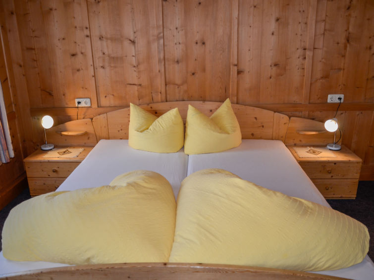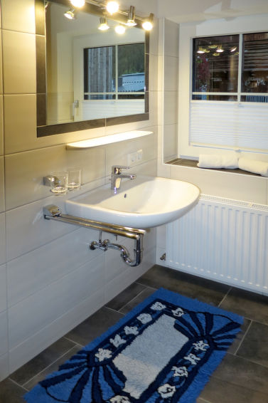 "Bergblick", 6-room house 160 m2 on 2 levels. Cosy and wooden furniture furnishings: upper floor: 1 room with 1 double bed, hand-basin and satellite TV. 1 room with 1 bed (90 cm, length 200 cm), 1 double bed and hand-basin. 1 double bedroom with 1 bed (90 cm, length 200 cm), 1 double bed. Shower/WC. 2nd upper floor: 2 double bedrooms, each room with shower/WC. 1 room with 1 french bed (140 cm, length 200 cm). Large kitchen-/living room (oven, dishwasher, 4 ceramic glass hob hotplates, toaster, kettle, freezer, electric coffee machine) with dining table, satellite TV and radio. Shower/WC. Carpet. Large terrace 60 m2. Terrace furniture. Beautiful panoramic view of the mountains and the valley. Facilities: children's high chair, baby cot, hair dryer. Internet (WiFi, free). Parking (roofed, 4 cars) at 100 m. Please note: non-smokers only. Private entrance, smoke alarm, fire extinguisher.