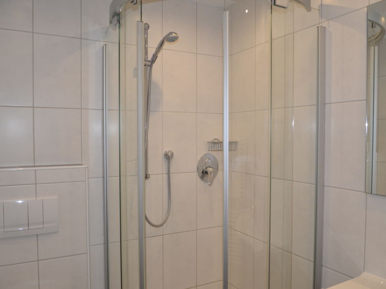 "Georg", 6-room apartment 130 m2 on 2 levels. Bright, wooden furniture furnishings: living/sleeping room with 1 double sofabed, dining table and satellite TV. Exit to the balcony. 2 double bedrooms. 1 room with 1 bed, 1 double bed and shower/WC. Open kitchen (oven, dishwasher, 4 ceramic glass hob hotplates, toaster, kettle, microwave, electric coffee machine). Shower/WC, sep. WC. On the lower ground floor: (exterior staircase) living/sleeping room with 1 double sofabed, dining table and satellite TV. 1 double bedroom. Kitchen (oven, dishwasher, 4 ceramic glass hob hotplates, kettle, microwave, electric coffee machine). 2 showers/WC. Oil heating. Carpet. Balcony, terrace. Beautiful view of the mountains. Facilities: safe, baby cot. Internet (WiFi, free). Please note: non-smokers only. Smoke alarm, fire extinguisher. No internal connecting door between the separated properties.