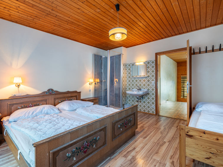 "Pilz", 9-room house 220 m2 on 3 levels. Rustic and cosy furnishings: living/dining room with dining table, dining nook, satellite TV, hi-fi system and tiled stove. 1 room with 1 bed and 1 double bed. Kitchen (oven, dishwasher, 4 ceramic glass hob hotplates, microwave, electric coffee machine) with small dining table, dining nook. Shower, sep. WC. On the lower ground floor: walk-through room with 2 beds. Open interconnecting room with 1 double bed and shower/WC. Upper floor: 1 room with 1 bed, 1 double bed, hand-basin and shower. 2 rooms, each room with 1 bed, 1 double bed and hand-basin. 2 rooms, each room with 2 beds and hand-basin. Shower/WC, sep. WC. Oil heating. Marvellous panoramic view of the mountains, the valley and Schladming. Facilities: washing machine, children's high chair, baby cot. Please note: non-smoking house. Maximum 1 pet/ dog allowed. Smoke alarm.