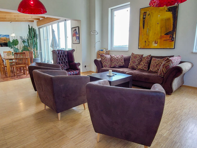 7-room villa 250 m2 on 2 levels. Spacious, comfortable and tasteful furnishings: entrance hall. Large living room 70 m2 with dining table, satellite TV, radio and DVD. Exit to the terrace. 2 double bedrooms. 1 room with 2 beds. Open kitchen (oven, dishwasher, 4 ceramic glass hob hotplates, microwave, freezer, electric coffee machine). Bathroom, shower/WC, 2 sep. WC's. On the lower ground floor: entrance hall. Living room 35 m2 with dining table, satellite TV, radio and DVD. Exit to the terrace. 1 double bedroom with bath/WC. 1 room with 2 beds. Open kitchen (oven, dishwasher, 4 ceramic glass hob hotplates, freezer, electric coffee machine). Shower, sep. WC. 2 terraces, south facing position. Terrace furniture, deck chairs, box-room. Marvellous view of the mountains and the countryside. Facilities: washing machine. Internet (WiFi, free). Parking (roofed, 2 cars) at the house. Please note: non-smoking house. Smoke alarm. Main entrance on the first floor. Nespresso capsule machine available.