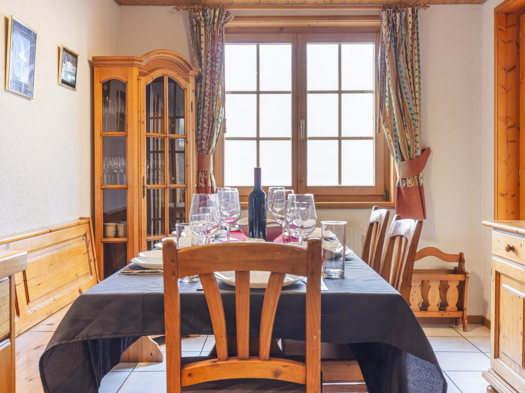 Small residence "La Tour d'Antheme". In the resort, in a quiet, sunny, elevated position, in a cul-de-sac. In the house: storage room for skis, washing machine, tumble dryer (for shared use). Parking at the house. Grocery 200 m, supermarket 800 m, restaurant 100 m, bakery 600 m, café 500 m, 2 minute walk to the centre, bus stop 50 m, railway station "Champèry Village" 300 m. Tennis 550 m, walking paths from the house 1 m, cable car 700 m, ski rental 600 m, ice rink 550 m. Nearby attractions: Les Dents du Midi, Val d'Illiez 5 km, Monthey 12 km, Champéry Aventure Parc 2 km, Montreux 35 km. Well-known ski regions can easily be reached: Portes du Soleil. Hiking paths: Portes du Soleil.