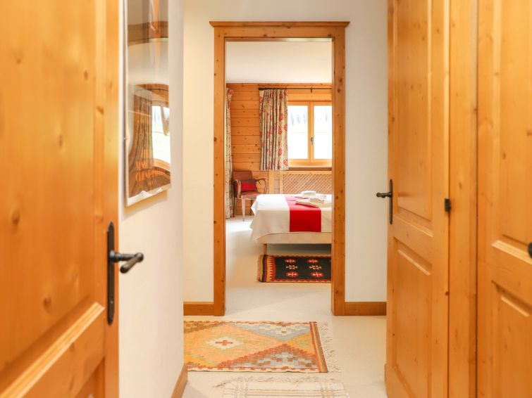 "Pré Vert 3", 5-room apartment 158 m2 on 1st floor, south facing position. Spacious, comfortable and tasteful furnishings: large living/dining room 50 m2 with open-hearth fireplace, dining table and TV (flat screen). Exit to the balcony, south facing position and west facing position. 1 room with 1 french bed (1 x 160 cm). Exit to the balcony, west facing position. 1 room with 1 french bed (1 x 180 cm), bath/WC and double hand-basin. Exit to the balcony, west facing position. 1 room with 1 french bed (2 x 90 cm). Exit to the balcony, north facing position and west facing position. 1 room with 1 french bed (2 x 90 cm), shower/WC. Open kitchen (oven, dishwasher, 4 ceramic glass hob hotplates, toaster, kettle, microwave, freezer, electric coffee machine, Capsules for coffee machine (Nespresso) extra, raclette grill, fondue Set (cheese)). Bath/WC, sep. WC, double hand-basin. Balcony 31 m2, south facing position and west facing position, 2 small balconies 8 m2, north facing position and west facing position. Balcony furniture. Beautiful view of the mountains. Facilities: washing machine, dryer, hair dryer. Internet (WiFi). Garage space n 3 + 3 (2 cars). Please note: non-smokers only.