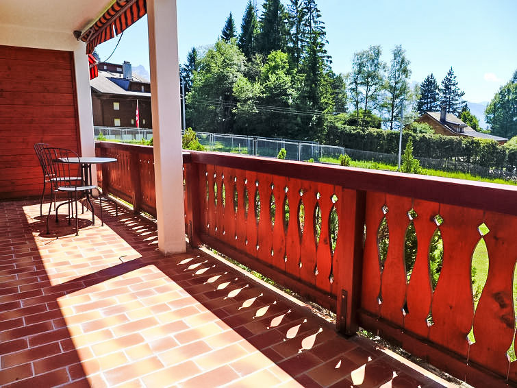 "Topaze 2", 2-room apartment 40 m2, on the ground floor, south facing position. Practical furnishings: living/dining room with dining nook, cable TV and DVD. Exit to the balcony. 1 room with 2 beds. Exit to the balcony, south facing position. Kitchenette (4 hot plates, oven, dishwasher, toaster, kettle, microwave, freezer, electric coffee machine, raclette grill, fondue Set (chinoise, cheese)) with hatch. Bath/WC. Balcony, south facing position. Terrace furniture. Beautiful view. Facilities: hair dryer. Internet (WiFi, free). Please note: non-smokers only.