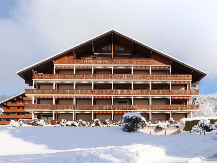 Roches Grises: Residence "Topaze". Above Villars, in a sunny position, 200 m from the skiing area, south facing position. In the house: lift, storage room for skis, central heating system, washing machine (extra), tumble dryer (for shared use, extra). Motor access to the house. Parking (limited number of spaces). Shop 900 m, grocery 700 m, restaurant, bakery 800 m, 12 minute walk to the centre, bus stop 1.2 km, railway station "Roches Grises" 20 m, indoor swimming pool 1.6 km, thermal baths "Lavey-les-Bains" 19 km. Sports harbour 25 km, golf course (18 hole) 7 km, indoor tennis centre 350 m, sports centre 350 m, mountain railway 20 m, gondola lift 1.9 km, ski school 1.3 km, children's ski school, ice rink 1.6 km, children's playground 600 m. Free ski bus service to the ski region Villars. Please note: Additional accommodations can be booked.