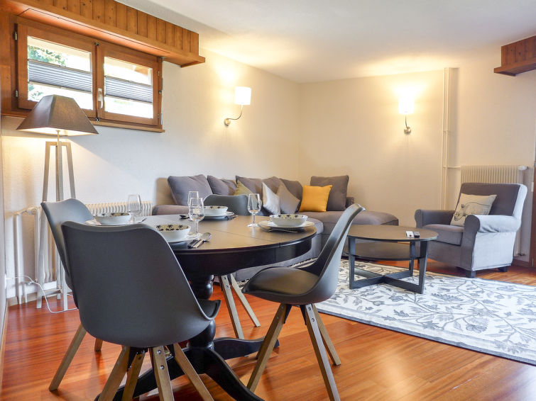 "Villars Soleil B15", 3-room maisonette 71 m2 on 1st floor, south-west facing position. Practical and beautiful furnishings: living/dining room with open-hearth fireplace, dining table and TV (flat screen), hi-fi system. Exit to the balcony, south facing position and west facing position. Small kitchen (oven, dishwasher, 4 ceramic glass hob hotplates, toaster, kettle, microwave, electric coffee machine, Capsules for coffee machine (Nespresso) extra, raclette grill, fondue Set (cheese)). Sep. WC. Upper floor: with sloping ceilings, 1 room with 2 beds (90 cm). With sloping ceilings, 1 double bedroom with 1 french bed (160 cm). Exit to the balcony, south facing position and west facing position. Bath/WC. 2 small balconies 5 m2, south facing position and west facing position. Partial view. Facilities: hair dryer. Internet (WiFi, free). Parking, garage space n E. 1 small pet/ dog allowed.