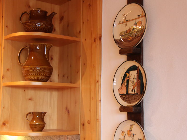 "Dauphin 7", 2-room apartment 36 m2 on 1st floor, south-east facing position. Beautiful furnishings: living/dining room with open-hearth fireplace, dining table and TV (flat screen). Exit to the balcony, east facing position and south facing position. 1 room with 1 x 2 bunk beds (90 cm, length 200 cm). Open kitchen (4 hot plates, oven, dishwasher, toaster, kettle, microwave, freezer, electric coffee machine, raclette grill). Bath/WC. Small balcony 10 m2, east facing position and south facing position. Balcony furniture. Beautiful panoramic view of the mountains. Facilities: hair dryer. Internet (WiFi, free). Please note: non-smokers only.
