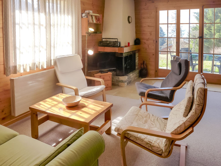 Villars: Chalet "Aiguilles Dorées III", 3 storeys. Above Villars, in the district of La Résidence, in a quiet, sunny position, 500 m from the skiing area, in the countryside, south facing position. In the house: central heating system, washing machine (extra), tumble dryer (for shared use, extra). In Winter: please take snow chains. Shop 2.7 km, grocery 1.4 km, restaurant 2 km, bakery 2 km, 20 minute walk to the centre, bus stop 2 km, railway station "Villars" 3 km, indoor swimming pool 2.3 km, thermal baths "Lavey-les-Bains" 19 km. Sports harbour 25 km, golf course (18 hole) 8 km, tennis 3.1 km, indoor tennis centre 3.1 km, sports centre 3.1 km, mountain railway 3 km, ski lift 2.6 km, gondola lift 1.5 km, ski bus stop 1.6 km, ski school 2.9 km, children's ski school 3.1 km, ice rink 2.3 km, children's playground 3.3 km. Please note: car recommended. Free ski bus service to the ski region Villars. In case of good snow conditions, the house is accessible on skis.