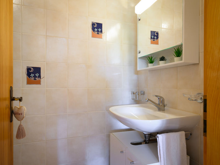 "Plein Sud 3", 2-room apartment 43 m2, on the ground floor, south-east facing position. Comfortable and tasteful furnishings: living/dining room with 1 sofabed, TV and flat screen. Exit to the terrace, south facing position and east facing position. 1 room with 1 double bed (2 x 80 cm, length 200 cm). Exit to the terrace, south facing position and east facing position. Open kitchen (4 hot plates, oven, dishwasher, toaster, kettle, electric coffee machine, Capsules for coffee machine (Nespresso) extra, raclette grill, fondue Set (chinoise, cheese)). Shower/WC. Underfloor heating. Large terrace, lawn. Terrace furniture, barbecue. Beautiful view of the mountains. Facilities: Internet (WiFi). Parking (1 car). Please note: non-smokers only.
