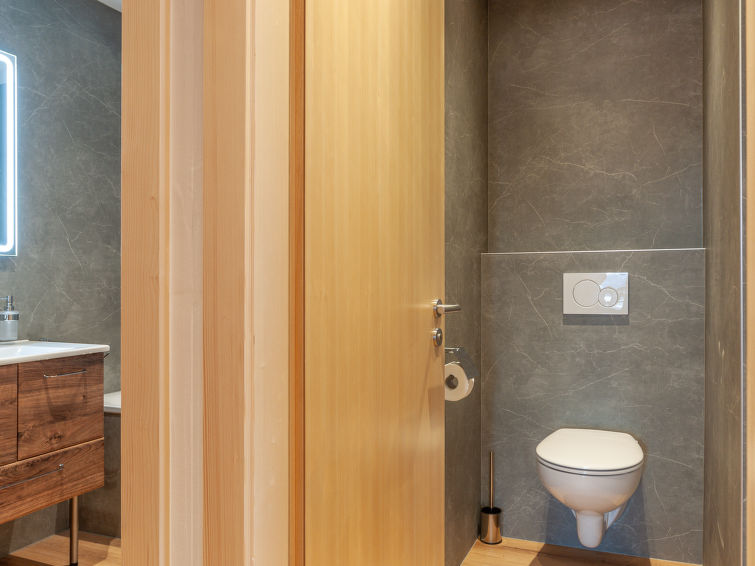 "Praplan 21-22", 6-room apartment 90 m2 on 4th floor. Bright, renovated in 2021, practical and beautiful furnishings: small entrance hall. Living/dining room with open-hearth fireplace and cable TV. Exit to the balcony, west facing position. 1 room with 1 double bed (2 x 80 cm, length 200 cm). 2 rooms, each room with 2 beds (90 cm, length 190 cm). Exit to the balcony, north facing position and west facing position. 2 children's rooms, each room with 2 beds (80 cm, length 190 cm). Large, open kitchen (oven, dishwasher, 4 induction hot plates, microwave, freezer, electric coffee machine, Capsules for coffee machine (nespresso) extra, raclette grill, fondue Set (cheese)). Bathroom, shower/WC, sep. WC. Large balcony, south facing position and west facing position balcony, north facing position and west facing position. Balcony furniture. Very beautiful view of the mountains and the resort. Facilities: children's high chair, hair dryer. Internet (WiFi, free). Parking space n 22, garage space n 21. Please note: non-smokers only. Maximum 1 pet/ dog allowed.