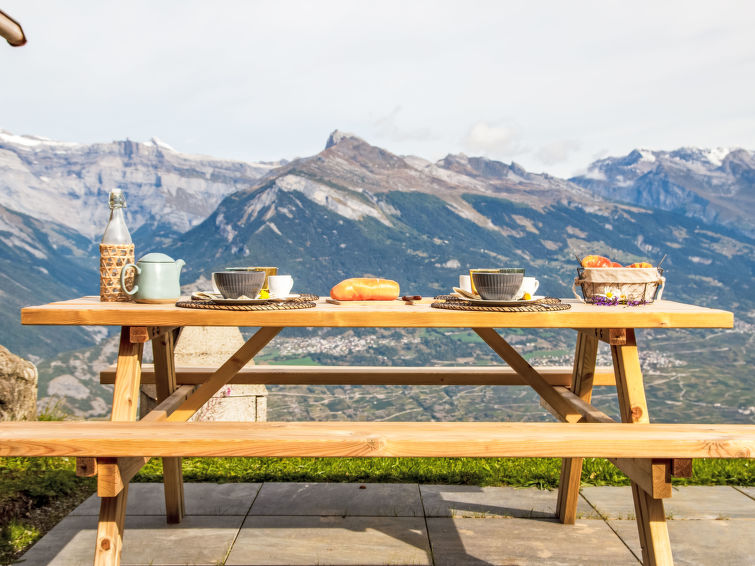 Rairettes: Beautiful, comfortable chalet "Le mayen des Veillas", 1'500 m a.s.l., 2 storeys, renovated in 2024. On the outskirts, 900 m from the centre, in a quiet position on a slope, 900 m from the skiing area. Lawn. Steep motor access. In Winter: please take snow chains, 4x4 car recommended in winter. Parking at the house at 50 m. Restaurant, bakery 900 m, bus stop "Haute-Nendaz, télécabine" 1 km, railway station "Sion" 17.4 km. Golf course (18 hole) 18 km, skisport facilities 900 m, ice rink 1 km. Well-known ski regions can easily be reached: Les 4 Vallées 900 m. Hiking paths: Bisse Vieux 350 m.
