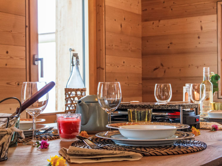 "Le mayen des Veillas", 4-room chalet 75 m2 on 2 levels. Object suitable for 2 adults + 2 children. Fully renovated in 2024, modern and cosy furnishings: dining room with Scandinavian wood stove. Small living room with TV. Open kitchen (oven, dishwasher, 4 induction hot plates, electric coffee machine, Capsules for coffee machine (Nespresso) extra, raclette grill, combination microwave, fondue Set (cheese)). Sep. WC. Electric heating. On the lower ground floor: 1 room with 1 double bed (2 x 80 cm, length 200 cm). Exit to the terrace. 1 small room with 2 beds (90 cm, length 200 cm). Shower/WC. Parquet floors. Terrace, east facing position, patio, north facing position and south facing position. Barbecue. Very beautiful panoramic view of the mountains and the valley. Facilities: hair dryer. Internet (WiFi). Parking at the house, in winter at 50 m. Please note: non-smokers only. The stove is to be fueled with pellets.