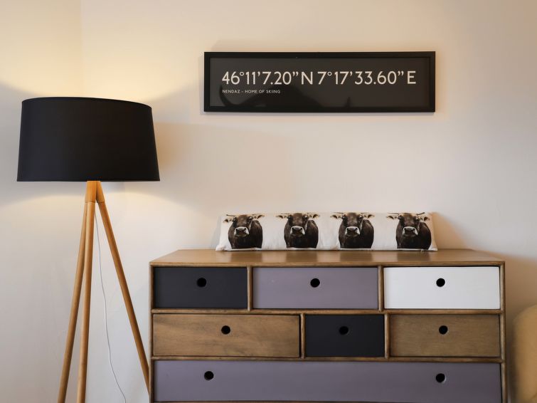 Residence "Domaine des Reines", built in 2008. In the resort. For shared use: indoor pool (8 x 15 m, depth 150 cm, seasonal availability: 15.Dec. - 01.Nov. pool opening hours: 08:00-22:00). Terrace. In the house: sauna, lift, storage room for skis, central heating system, washing machine, tumble dryer (for shared use, extra). Shop, restaurant 300 m, bus stop "Haute-Nendaz, télécabine" 650 m, railway station "Sion" 16.8 km, outdoor swimming pool 500 m. Golf course (18 hole) 18 km, gondola lift 200 m, ski bus stop 300 m, ski-kindergarten 50 m, ice rink 200 m. Nearby attractions: Spa des Bisses 200 m. Well-known ski regions can easily be reached: Nendaz-Tracouet 1.4 km. Hiking paths: Bisse du Milieu 800 m. Please note: ski bus (free of charge). Domaine des Reines A and B, access to the pool and sauna from outside at Domaine des Reines C.