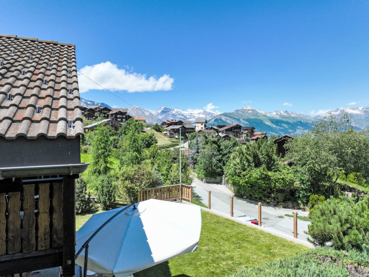 Beautiful chalet "Mirabeau", 2 storeys, built in 1990, renovated in 2024. In the district of Pattier, in a quiet position, east facing position. Private: well-kept garden 400 m2 (fenced). In Winter: please take snow chains, 4x4 car recommended in winter. Stepped path (15 steps) to the house. Parking, single garage. Supermarket 700 m, restaurant 1 km, bakery 650 m, 10 minute walk to the centre, bus stop "postal, La Crettaz" 230 m, outdoor swimming pool 1.7 km. Golf course (18 hole) 20 km, tennis 1.7 km, gondola lift 1.7 km, ski bus stop 240 m, ice rink 1.3 km, children's playground 1.5 km. Well-known ski regions can easily be reached: Tracouet 4 Vallées 1.7 km. Hiking paths: Bisse du Milieu 800 m. Please note: ski bus (free of charge).