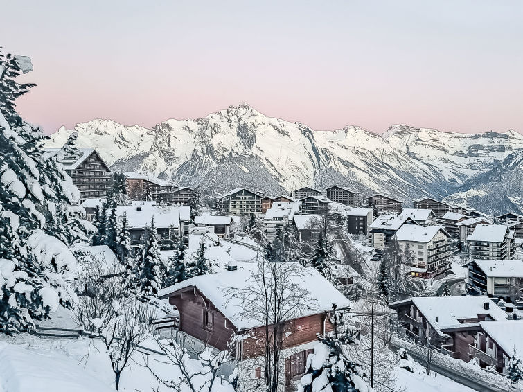 "Petite Plaisance", 4-room chalet 95 m2. Practical and beautiful furnishings: entrance hall. Living/dining room with open-hearth fireplace and cable TV. Exit to the terrace. Open kitchen (oven, dishwasher, 4 induction hot plates, toaster, kettle, microwave, electric coffee machine, Capsules for coffee machine (nespresso) extra, raclette grill, fondue Set (cheese)). Sep. WC. Electric heating. On the lower ground floor: 1 room with 2 beds (90 cm, length 200 cm). 1 room with 2 beds (90 cm, length 200 cm), bath/WC and double hand-basin. Exit to the patio. 1 room with 2 beds (90 cm, length 200 cm). Hip bath, sep. WC. Top floor: open gallery with sloping ceilings, ceiling height 80 - 120 cm. Balcony, east facing position, large terrace, south facing position and, east facing position, garden, west facing position. Terrace furniture, barbecue. Very beautiful view of the mountains and the valley. Facilities: washing machine, dryer, children's high chair, baby cot. Internet (WiFi). Parking, garage, height 190 cm, width 230 cm. Please note: non-smokers only. Maximum 1 pet/ dog allowed.