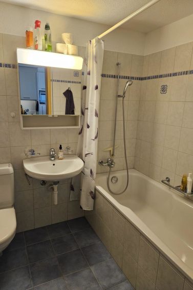 45 m2. More information by the provider: 2 1/2 room apartment in apartment building. Quiet location with large south-facing terrace and beautiful view. Very well situated, 150m from the Metsch valley station, right next to the cross-country ski run and public transport connections. Modern and beautifully furnished apartment, suitable for 2 persons, the dining table is suitable for 4 persons. In the living room there is a sofa bed and SAT-TV with radio. The kitchen is equipped with a dishwasher and a Nespresso machine. The capsules for the coffee machine must be brought along. The 160 x 200cm double bed in the bedroom is equipped with two single mattresses. The bathroom is equipped with a bathtub with shower curtain and WC. The apartment has a large terrace with a garden table for 4 people. Smoking is permitted on the terrace
