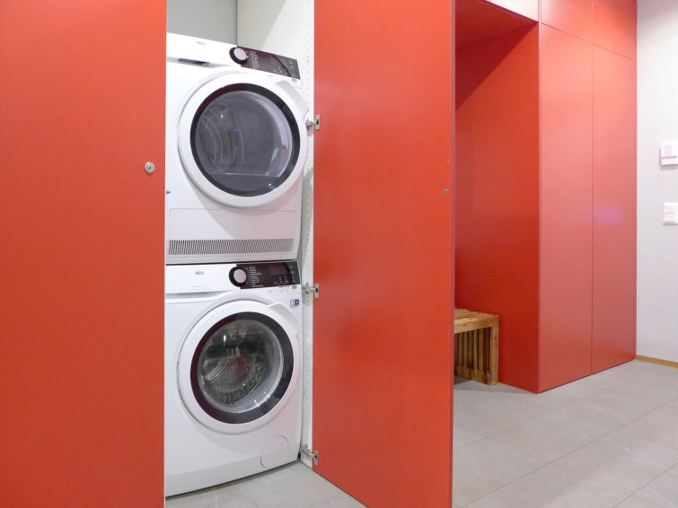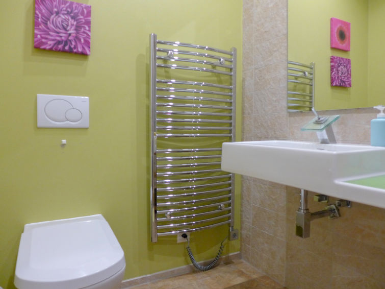 "Elegance", 3-room apartment 100 m2 on 3rd floor. Spacious and bright, very comfortable and modern furnishings: open large living/dining room 30 m2 with dining table, cable TV, flat screen, radio, CD-player and DVD. Exit to the balcony. 1 room 14 m2 with 1 double bed (160 cm, length 200 cm). Exit to the balcony. 1 room 15 m2 with 2 french beds (140 cm, length 200 cm). Exit to the balcony. Large kitchen 10 m2 (oven, dishwasher, 4 ceramic glass hob hotplates, toaster, kettle, microwave, freezer, grill, electric coffee machine, Capsules for coffee machine (Tchibo) extra, fondue Set (cheese)). Bath/WC, shower/WC. Underfloor heating. 2 small balconies. Very beautiful panoramic view of the mountains, the countryside and the resort. Facilities: washing machine, dryer, hair dryer. Internet (WiFi, free). Parking (roofed, 1 car). Please note: non-smokers only.