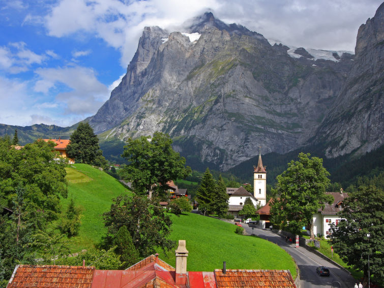 Residence "Chalet Abendrot apARTments". In the centre. In the house: reception, lounge, WiFi, table tennis, billiard table, playroom, lift, storage room for skis, central heating system. Pre-arrival grocery service. In Winter: please take snow chains. Communal covered parking (extra), public parking 200 m extra. Shop 400 m, restaurant 10 m, bus stop "Firstbahn" 80 m, railway station "Grindelwald Dorf" 800 m, outdoor swimming pool 2.5 km, indoor swimming pool 600 m. Golf course (9 hole) 2 km, tennis 1 km, minigolf 400 m, sports centre 600 m, mountain railway 800 m, gondola lift 80 m, ski rental 50 m, ski bus stop 80 m, cross country ski track 1 km, children's playground 600 m. Well-known lakes can easily be reached: Thuner-/Brienzersee 18 km. Please note: The owner does not accept any groups. Ski bus (free of charge). Neighbourhood highly sensitive to noise. Quietness and good behaviour expected. Indian restaurant "Golden India" in the house. The apartment house, built in chalet style, offers a youth room, a children's playroom, a garage (parking space CHF 98.00/week, reservation on arrival). Modern-rustic and cozy apartments, most with a spacious balcony or terrace and a wonderful view of the mountains. Please note: limited number of garage spaces. Pre-reservation not possible. Garage height and width: 12 parking spaces 2.09x2.06 m, 15 parking spaces 1.65x2.06 m. Max. 2000 kg.