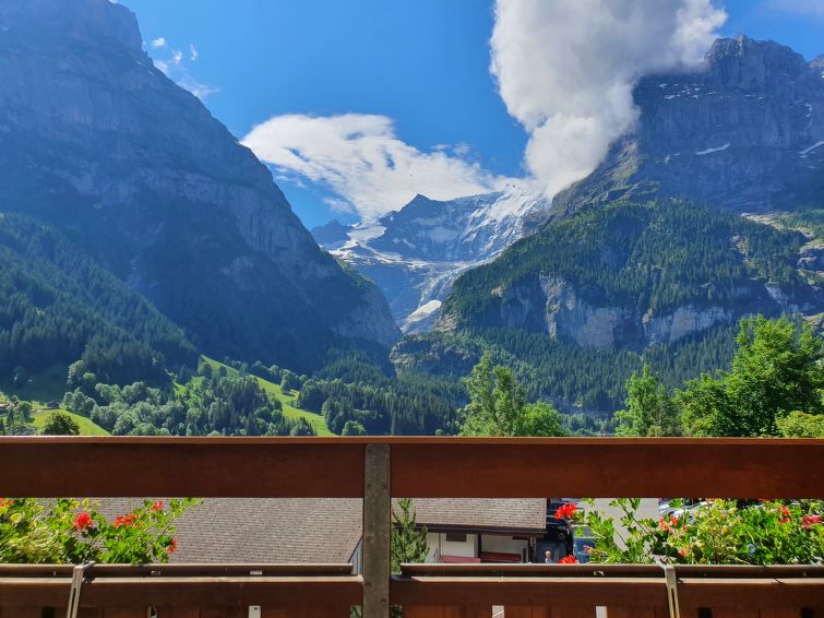 1-room apartment 27 m2 on 2nd floor, south facing position. Living/sleeping room with 2 beds and cable TV (flat screen). Open kitchen (oven, 4 ceramic glass hob hotplates, toaster, kettle, electric coffee machine) with dining table. Bath/WC. Balcony, south facing position. Balcony furniture. Beautiful view of the mountains and Eiger. Facilities: hair dryer. Internet (WiFi, free). Please note: non-smokers only. Maximum 1 pet/ dog allowed. A fondue set (meat or cheese) and a raclette oven can be borrowed from reception.