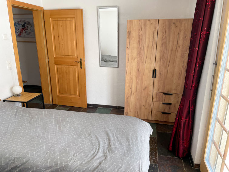 4-room apartment 113 m2 on 2 levels, on the ground floor, south facing position. Modern and cosy furnishings: living/dining room with cable TV (flat screen), radio, CD-player and DVD. Exit to the balcony, south facing position and west facing position. 1 room with 1 french bed (160 cm, length 200 cm). Open kitchen (oven, dishwasher, 4 ceramic glass hob hotplates, toaster, kettle, microwave, electric coffee machine, Capsules for coffee machine (Nespresso) extra, raclette grill, fondue Set (cheese)). Shower/WC. Floor heating. On the lower ground floor: 1 room with 2 beds (90 cm, length 200 cm). Exit to the terrace, south facing position and west facing position. 1 room with 1 french bed (160 cm, length 200 cm). Exit to the terrace, south facing position and west facing position. Bath/WC. Parquet floors, natural stone floors. Balcony, south facing position and west facing position, south facing position and west facing position, lawn. Balcony furniture. Marvellous view of the mountains and Eiger. Facilities: washing machine, dryer, hair dryer. Internet (WiFi, free). Parking space n 7 Bedford (roofed, 1 car) at the house. Please note: non-smokers only. Fire extinguisher.