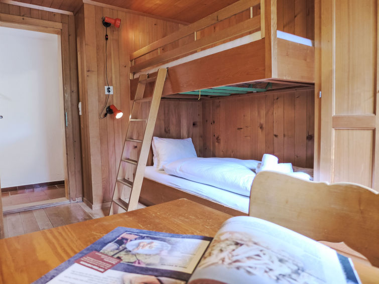 "Chalet Colette - 1", 3-room apartment 50 m2, on the ground floor, south facing position. Object suitable for 2 adults + 2 children. Practical and wooden furniture furnishings: living/dining room with dining nook, cable TV and flat screen. Exit to the terrace. 1 room with 2 beds (90 cm, length 200 cm). 1 small children's room with 1 x 2 bunk beds (90 cm, length 200 cm). Small kitchen (oven, dishwasher, 4 ceramic glass hob hotplates, toaster, kettle, freezer, electric coffee machine, fondue Set (chinoise, cheese)). Shower/WC. Wooden floors. Terrace, south facing position. Terrace furniture. Marvellous view of the mountains, the valley and the resort. Facilities: baby cot for up to 2 year olds (extra), hair dryer. Internet (WiFi, free). Parking (1 car) at 50 m. Please note: suitable for families. Non-smokers only. Fire extinguisher.