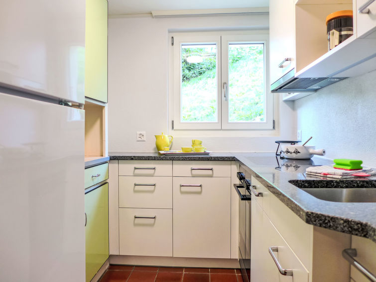 Cosy, rustic 2-family house "Chalet Colette", 2 storeys, detached, surrounded by meadows. In the district of Schybersboden, 550 m from the centre, in a quiet, sunny, elevated position on a slope, excellent location: right in the centre but still quiet, in the countryside, south facing position. For shared use: natural state property. Patio. In the house: storage room for skis, central heating system, washing machine, tumble dryer (for shared use, extra). Very steep motor access. In Winter: please take snow chains, 4x4 car recommended in winter. 80 m steep footpath to the house. Parking at 50 m. Shopping centre 550 m, restaurant 600 m, bakery 700 m, bicycle rental 1 km, 10 minute walk to the centre, bus stop "Kreuzweg Bus Nr. 122" 350 m, railway station "Grindelwald Dorf" 700 m, indoor swimming pool 300 m. Golf course (9 hole) 3.5 km, tennis 2 km, minigolf 800 m, sports centre 600 m, cable car 1 km, mountain railway 600 m, gondola lift 800 m, ski rental 300 m, ski bus stop 650 m, cross country ski track 2 km, children's playground 600 m. Well-known lakes can easily be reached: Thuner-/Brienzersee 18 km. Please note: no lift. Ski bus (free of charge). Free ski bus service to the ski region First, Männlichen/kl. Scheidegg.