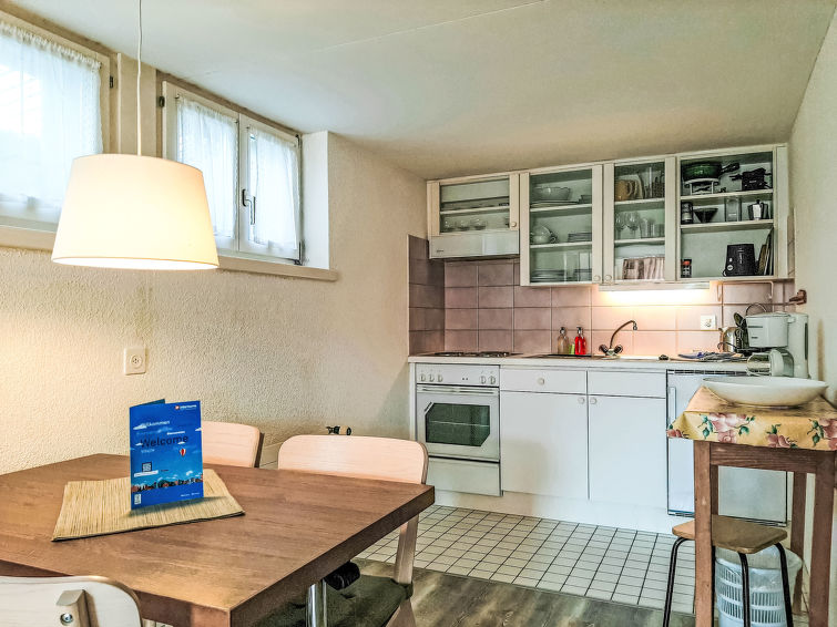 "Helene Apt. Hella", 2-room apartment 42 m2, on the lower ground floor. Practical and comfortable furnishings: living/sleeping room with sliding door with 1 double bed (2 x 90 cm, length 200 cm), satellite TV and radio. 1 small room with 1 bed (80 cm, length 200 cm). Small kitchen (3 hot plates, oven, toaster, kettle, electric coffee machine, Capsules for coffee machine (Nespresso) extra, fondue Set (cheese)). Bath/shower/WC. View of the mountains. Facilities: Internet (WiFi, free). Please note: non-smokers only. Maximum 1 pet/ dog allowed.