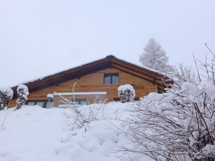 "Mioche", 4-room chalet 120 m2 on 2 levels. Spacious, rustic and cosy furnishings: living/dining room with open-hearth fireplace, satellite TV, radio, CD-player and DVD. 1 room with 1 double bed (2 x 90 cm, length 200 cm). Kitchen (oven, dishwasher, 4 ceramic glass hob hotplates, toaster, kettle, microwave, electric coffee machine, Capsules for coffee machine (Dolce Gusto) extra, raclette grill, fondue Set (cheese)). Shower/bidet/WC, sep. WC. Upper floor: with sloping ceilings, 2 rooms, each room with 2 beds (90 cm, length 200 cm). Shower/WC. Large terrace. Terrace furniture. Marvellous panoramic view of the mountains. Facilities: iron, hair dryer, logs (extra). Internet (WiFi, free). Please note: suitable for families. Non-smokers only.