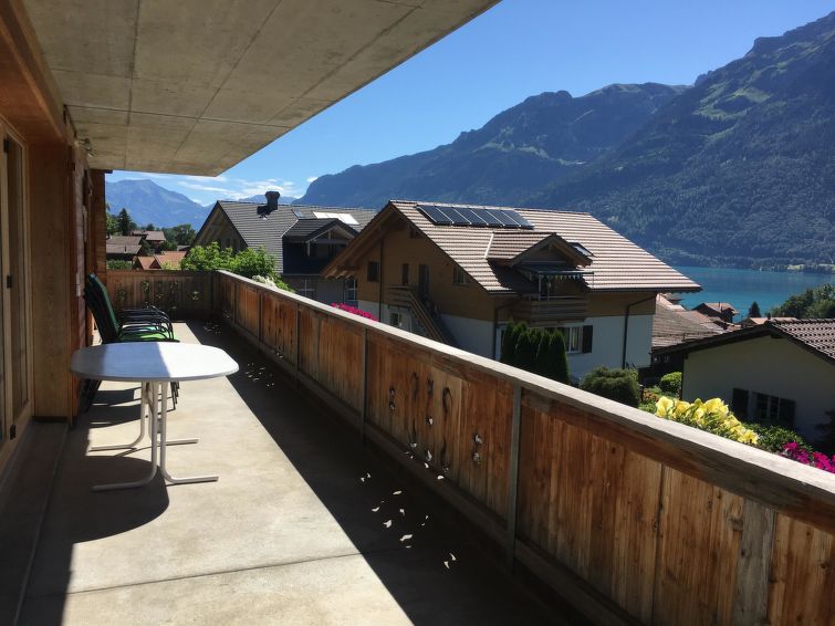 100 m2. More information by the provider: Located close to the picturesque Lake Brienz, you will spend relaxing holidays with your loved ones in our spacious apartments in Ringgenberg. Just as our slogan says “Arrive as a guest, leave as a friend”, we have been welcoming travellers since 1990 from all over the world with hearty hospitality. To make sure you won’t miss anything during your holiday, we are there for you. All you need for a holiday with us are your clothes and good spirits. We'll take care of the rest. Every apartment contains a microwave oven, an oven, a fridge, television, garden furniture and free Wifi. The front picture of the house is just an example and can vary to the real house.