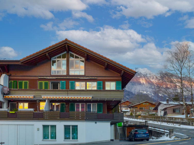 Brienz: Small apartment house, 3 storeys. In a sunny position on a slope, in the residential district, 400 m from the lake. In the house: table football, central heating system. Parking (for 2 cars) at the house. Grocery 200 m, supermarket 1.5 km, restaurant 250 m, bakery 200 m, bus stop 250 m, railway station "Brienz" 1.3 km, public bathing area 600 m. Golf course (18 hole) 25 km, walking paths from the house, cycle lane 10 m, mountain railway 1.5 km, skisport facilities 12 km, ski bus stop 250 m, ski school 12 km, sled run 15 km, cross country ski track 15 km. Nearby attractions: Freilichtmuseum Ballenberg, Brienzer Rothorn, Aareschlucht. Well-known ski regions can easily be reached: Meiringen - Hasliberg 15 km, Axalp 12 km. Well-known lakes can easily be reached: Brienzersee. Hiking paths: Brienzer Rothorn, Axalp, Rosenlaui. Groups of teenagers on request only. Please note: airfield close by.