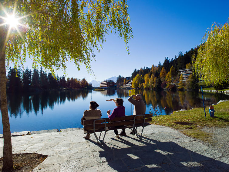 Cosy, comfortable chalet "Praline", 2 storeys. Below Crans, in the district of La Délège, 2.9 km from the centre of Crans, in a quiet, sunny, elevated position, 2.7 km from the lake, 3.1 km from the skiing area, in a cul-de-sac, south facing position. Private: garden (not fenced) with lawn. In the house: central heating system, washing machine, drying room. Stepped path (64 steps) to the house. Parking (limited number of spaces) at the house at 100 m. Shop 2.8 km, supermarket 2.8 km, restaurant 600 m, bakery 2.8 km, bus stop "Crans-Montana, La Délège" 300 m, railway station "Funiculaire Montana Gare" 4.6 km, bathing lake "Moubra" 4.2 km. Golf course (18 hole) 3 km, tennis 4.2 km, indoor tennis centre 4.2 km, riding stable 4.6 km, walking paths from the house 100 m, skisport facilities 3.1 km, cross country ski track 2.8 km, ice rink 3.9 km. Well-known lakes can easily be reached: Etang Long 2.7 km. Please note: car recommended.