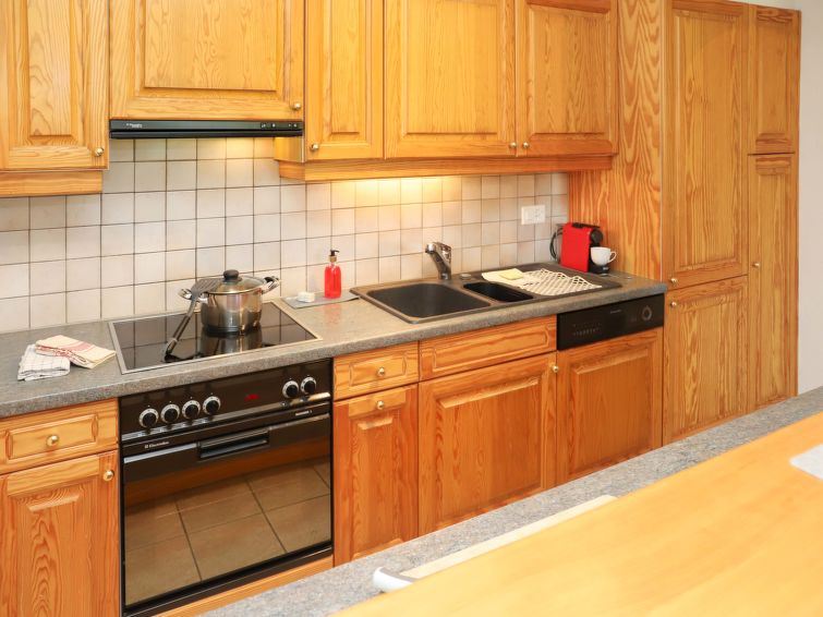 "Cascades d'Eden 2", 3-room apartment 72 m2, on the upper ground floor. Comfortable and beautiful furnishings: living/dining room with open-hearth fireplace and cable TV (flat screen), hi-fi system and DVD. Exit to the garden, to the terrace, south facing position. 1 room with 2 beds (90 cm, length 200 cm). Exit to the terrace. 1 room with 1 french bed (160 cm, length 200 cm), bath/WC. Exit to the terrace. Open kitchen (oven, dishwasher, 4 ceramic glass hob hotplates, toaster, kettle, microwave, freezer, electric coffee machine, Capsules for coffee machine (Nespresso) extra, raclette grill, fondue Set (chinoise, cheese)). Shower/WC. Underfloor heating. Large terrace, garden 60 m2. Terrace furniture, barbecue. Beautiful view of the mountains. Facilities: iron, baby cot, hair dryer. Internet (WiFi, free). Garage space n P2, height 200 cm, width 260 cm. Please note: non-smokers only. Folding baby bed and without bed linen, blanket and pillow.