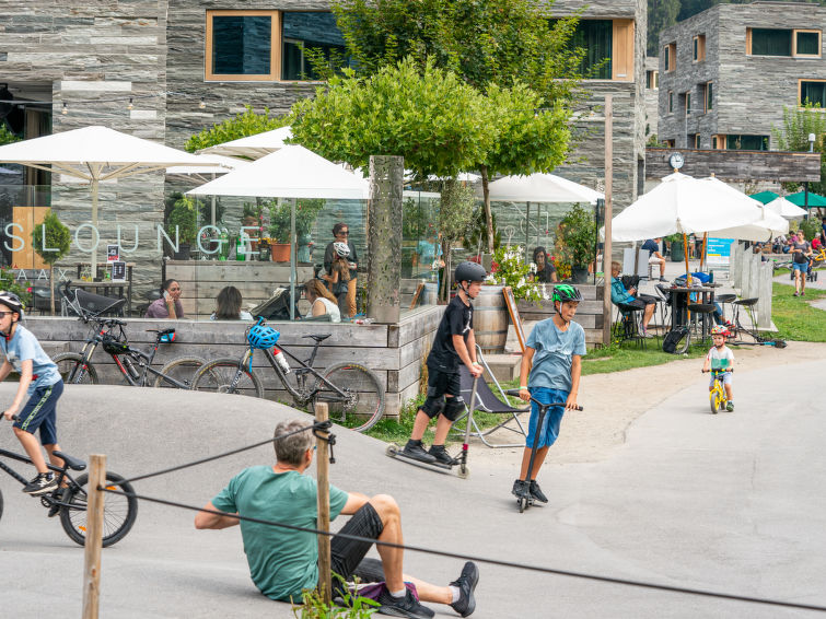 Child friendly, modern, comfortable resort "rocksresort", 1'100 m a.s.l., built in 2009. 11 houses in the resort. In the resort Laax-Murschetg, in a central, sunny position, 50 m from the skiing area. In the house: reception, restaurant, bar, spa area (extra), shopping facilities, boutique, lift, storage room for bicycles, storage room for skis, central heating system, washing machine, tumble dryer (for shared use, extra). Linen change (suppl. charge extra). Room cleaning daily on request (extra). Breakfast possible on request (extra). Pre-arrival grocery service. Motor access to the grounds. Communal covered parking (extra). E-charging station. Grocery 100 m, restaurant, bar 50 m, bus stop. Golf course (18 hole) 5 km, cable car, ski lift, slopes, ski rental 50 m, ski school 50 m, sled run, cross country ski track 100 m, children's playground 50 m. Nearby attractions: Bikerouten & Wandewege 50 m, Klettersteig Pinut 6.5 km, Rheinschlucht 16 km, Baumwipfelpfad 50 m. Well-known ski regions can easily be reached: Weisse Arena Flims/Laax 224 km Skipisten. Well-known lakes can easily be reached: Laaxersee 2.2 km, Caumasee 3.5 km, Crestasee 6.5 km. Hiking paths: Planetenlehrpfad Falera-Laax-Falera 1.5 km, 659 Senda Ruinaulta 2.5 km, Bergwanderroute Unterer Segnesboden 7 km. Please note: In case of good snow conditions, the house is accessible on skis. lockable ski depot boxes in the complex.