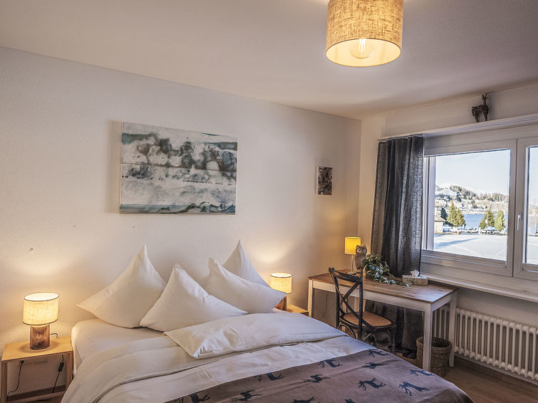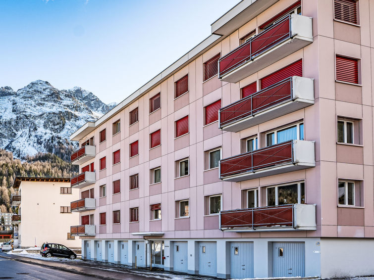 St. Moritz Bad: Simple apartment house "Casa Polo", 4 storeys, built in 1967, renovated in 2009. In the resort 300 m from the centre of St. Moritz Bad, in a central position in the residential district, 300 m from the lake, 750 m from the skiing area. In the house: lift. In Winter: please take snow chains. Parking space n 4 (for 2 cars) on the premises. Shop 300 m, grocery 200 m, supermarket 500 m, restaurant 200 m, bus stop "St. Moritz Bad - Kath. Kirche" 150 m, indoor swimming pool 450 m. Golf course (18 hole) 8 km, surf school 2.8 km, sailing school 500 m, indoor tennis centre 1 km, walking paths from the house 200 m, cable car, slopes 750 m, ski rental 200 m, ski bus stop 100 m, cross country ski track 300 m, ice rink 250 m, children's playground 200 m. Nearby attractions: Segantini-Museum in St. Moritz 2.2 km, Engadiner Museum 1.2 km, Milli Weber Haus 2.9 km, Olympia Bob Run Museum 2.6 km, Nietsche Museum 9.5 km. Well-known ski regions can easily be reached: Corviglia Piz Nair 900 m, Corvatsch - Furtschellas - Surlej 6.5 km, Diavolezza Lagalb 20 km. Well-known lakes can easily be reached: St. Moritz See 300 m, Silvaplana See 5.2 km, Silser See 9.5 km. Hiking paths: Stazerwald & Stazersee, Corviglia- Piz Nair, Muottas Muragl. Please note: Loading and unloading of baggage is possible at the holiday house. The keys‘ handover takes place by the agency Interhome in St. Moritz Bad.