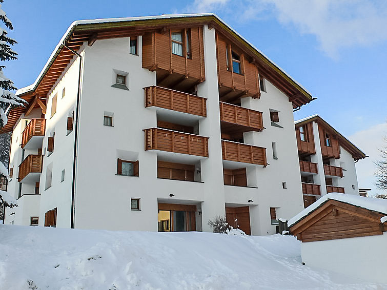 "Chesa Maurus A5", 3-room apartment 100 m2 on 1st floor. Spacious, cosy furnishings: open living/dining room with open-hearth fireplace, dining table and TV (flat screen). Exit to the balcony. 1 large double bedroom with 1 double bed (1 x 170 cm, length 200 cm). Exit to the loggia. 1 double bedroom with 1 double bed (2 x 90 cm, length 200 cm). Small kitchen (oven, dishwasher, 4 ceramic glass hob hotplates, toaster, kettle, microwave, electric coffee machine, Capsules for coffee machine (Nespresso) extra, raclette grill, fondue Set (chinoise, cheese)). Bath/WC, shower/WC. Balcony furniture. Beautiful view of the mountains, the countryside and the resort. Facilities: iron, hair dryer. Internet (WiFi, free). Garage space n A5 (nr.5+6) on the property (2 cars), height 205 cm, width 210 cm. Please note: suitable for families. Non-smokers only, non-smoking house. Maximum 1 pet/ dog allowed. : 2 extra beds in a separate room available for a fee.