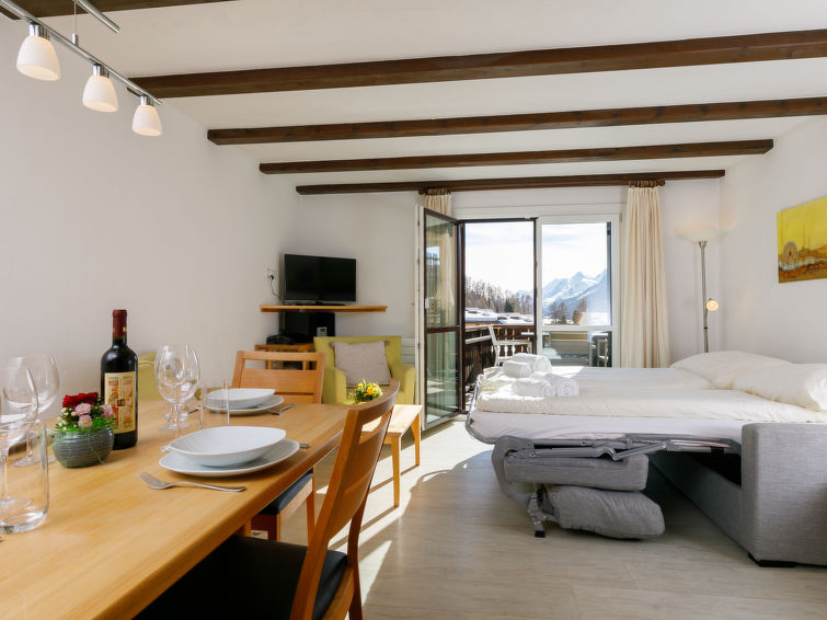 Cosy apartment block "Residenza Chesa Margun", 1'815 m a.s.l., surrounded by trees and meadows. 7 houses in the residence. In the district of Surlej, in a quiet, sunny, elevated position on a slope, 5 m from the edge of the forest, 1 km from the lake, 200 m from the skiing area, in a cul-de-sac, south facing position. For shared use: lawn for sunbathing. Children's playground (slide, swing). In the complex: reception, restaurant, bar, WiFi, lift, storage room for bicycles, storage room for skis, central heating system, washing machine (extra), tumble dryer (for shared use, extra). Bread roll service. Motor access to the house. 4x4 car recommended in winter. Communal covered parking. Dimension: height 203 cm. E-charging station. Shop 2 km, bakery 250 m, bicycle rental 100 m, bus stop "Surlej Foppas" 210 m, thermal baths "Samedan" 14 km. Golf course (8 hole) 7 km, surf school 3 km, tennis 3 km, sports centre 3 km, walking paths from the house 100 m, cable car 500 m, ski lift, chair lift 200 m, ski rental 100 m, ski bus stop 20 m, ski school, children's ski school, cross country ski track 200 m, ice rink 3 km. Well-known ski regions can easily be reached: Corvatsch 500 m. Well-known lakes can easily be reached: Silvaplanasee 1 km. Hiking paths: Panoramaweg 1 km, Via Engiadina 1 km. Please note: fishing [permit required]. Ski bus (free of charge). Free ski bus service to the ski region Silvaplana-Surlej-Corvatsch Bahn. Please note: Additional accommodations can be booked. Property ref. CH7513.600 is situated on the same property. All houses/apartments are individually designed/furnished. The residence is approx. 500 m below the Corvatschbahn. The south apartments have a view of the mountains, the north apartments have a view of the forest. Children's corner with various games for small and large children. Skiing on the Corvatsch-Snownight (illuminated slope). Extra ski pass required. The house has a charging station for electric cars.