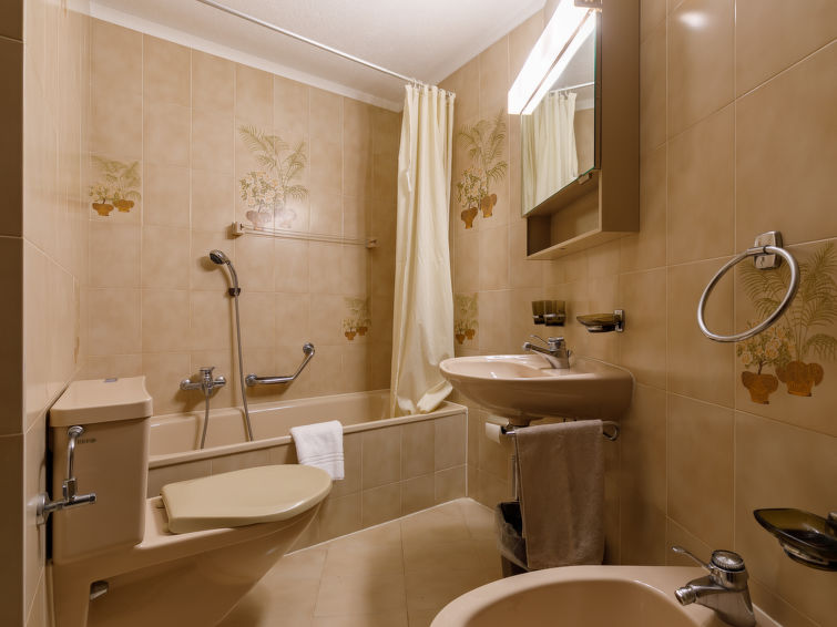 "Residenza Chesa Margun 66-1", 2-room apartment 77 m2, on the ground floor. Bright, cosy furnishings: living/dining room with 1 double sofabed, digital TV, flat screen and radio. 1 room with 2 beds and electric heating. Exit to the balcony. Kitchen (oven, dishwasher). Bath/WC. Electric heating. Terrace, south facing position. View of the mountains and the garden. Facilities: Internet (WiFi, free). Suitable for families.