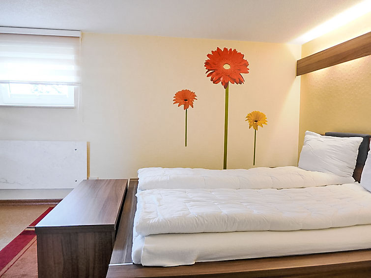 2-room house 60 m2 on 2 levels, on the ground floor. Modern and tasteful furnishings: large living/dining room with Scandinavian wood stove and satellite TV (flat screen), hi-fi system. Exit to the balcony. Open kitchen (oven, dishwasher, 4 ceramic glass hob hotplates, toaster, kettle, microwave, electric coffee machine). On the lower ground floor: (steep stair), 1 room with 1 french bed (160 cm, length 200 cm), radio. Shower/WC. Electric heating. Balcony 15 m2, terrace 15 m2. Terrace furniture. Very beautiful panoramic view of the mountains and the valley. Facilities: children's high chair, baby cot, hair dryer, logs (extra). Please note: non-smoking house. Smoke alarm.