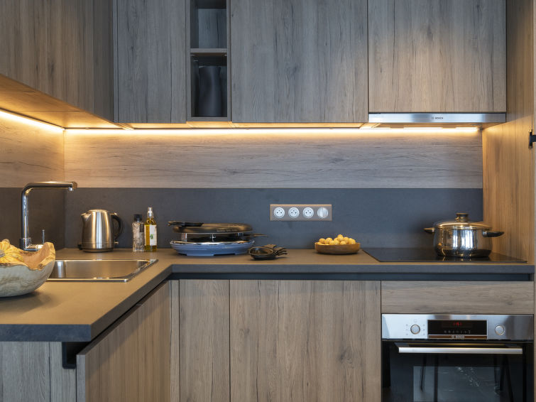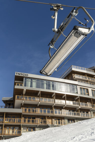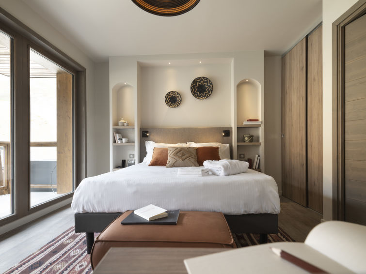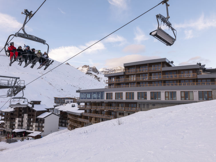 Tignes Val Claret: Residence "Ynycio", built in 2022. 33 apartments in the residence. For shared use: indoor pool heated. In the complex: reception, sauna, hamam, central heating system. 5 minute walk to the centre. Cable car 100 m, chair lift, skisport facilities 100 m, ski rental 500 m. Nearby attractions: Funiculaire de la Grande Motte, Télésiège de Bollin. Well-known ski regions can easily be reached: Alpes 2150 m d'altitude. Please note: the photograph shows a typical example. Additional accommodations can be booked. The holiday properties may differ in living space, floorplan, equipment and furnishing.