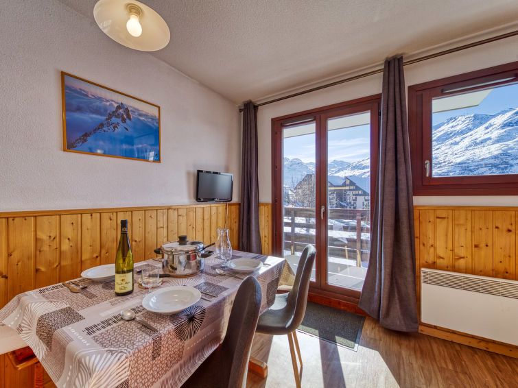 Residence "Balcons D'Olympie", 7 storeys. In the district of Preyerand 500 m from the centre of La Croisette, directly by the skiing area. In the complex: lift, storage room for skis. Public parking on the road. Grocery 200 m, shopping centre 500 m, restaurant 100 m, bus stop "Gare routière Les Menuires" 800 m. Sports centre 500 m, skisport facilities 50 m, slopes 10 m, ski school 500 m, cross country ski track 100 m. Well-known ski regions can easily be reached: 3 Vallées. Please note: lift to 5th floor. The photograph shows a typical example. Additional accommodations can be booked. The district of Preyerand is connected by cable car (free, from 08.00 - 23.00) to the centre "La Croisette".