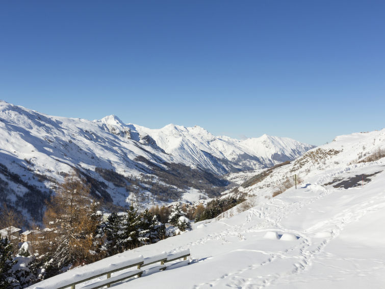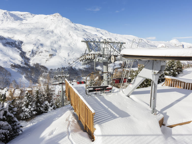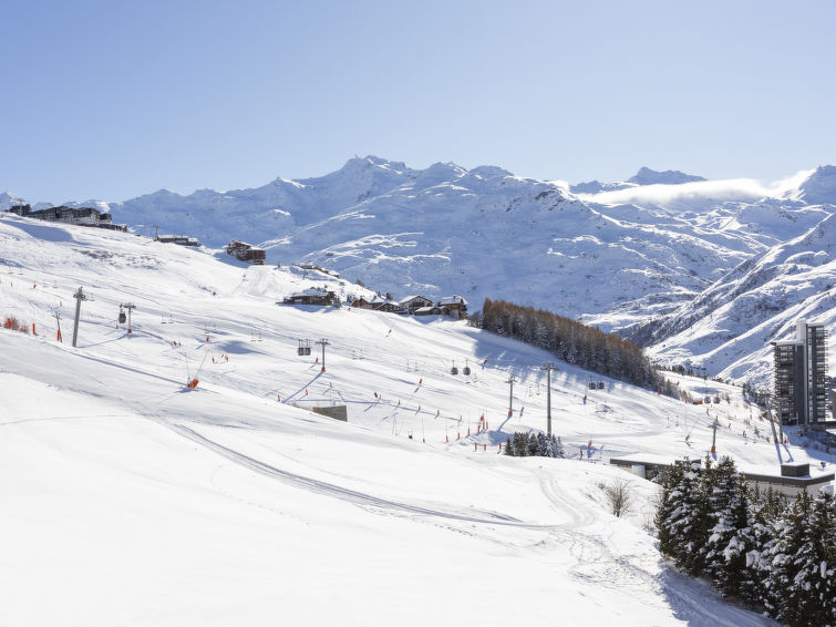 Large, modern residence "Sowell Résidences Crêt Volant", 1'850 m a.s.l.. 36 apartments in the residence. In the district of Brelin 200 m from the centre of Les Menuires, 7 km from the centre of Val Thorens, 26 km from the centre of Moutiers, 250 m from the skiing area. For shared use: indoor pool (6 x 2 m, seasonal availability: 01.Jan. - 31.Dec.). In the complex: reception, lounge, shopping facilities, lift, storage room for skis. Storeroom available. Shop 100 m, restaurant 500 m, indoor swimming pool 50 m. Ski lift, slopes 250 m. Well-known ski regions can easily be reached: Les 3 Valées 250 m. Please note: the photograph shows a typical example. The holiday properties may differ in living space, floorplan, equipment and furnishing. Access to the center of Les Ménuires (la Croisette) located approx. 200 m by gondola.