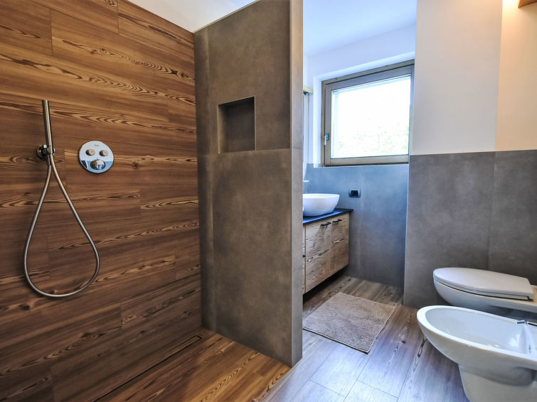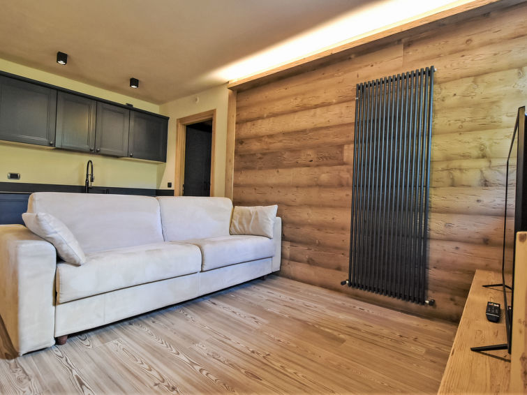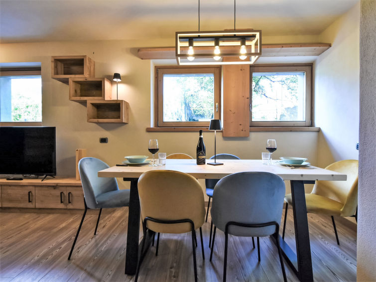3-room apartment 75 m2, lower ground floor, west facing position. Spacious and bright, fully renovated in 2024, modern and stylish furnishings: entrance hall. Large living/dining room with dining table and TV. 1 double bedroom with Dressing room with TV. 1 room with 2 beds. Large kitchenette (oven, dishwasher, 4 induction hot plates, toaster, kettle, electric coffee machine, Capsules for coffee machine (Nespresso) free). Shower/bidet/WC. Heating. Large garden, west facing position and south facing position, lawn. Terrace furniture, barbecue, deck chairs (4). View of the mountains and the garden. Facilities: washing machine, dryer, children's high chair, baby cot, hair dryer. Internet (WiFi, free). Parking. Please note: non-smokers only. Maximum 1 pet/ dog allowed. IT014009C2ELADTII5