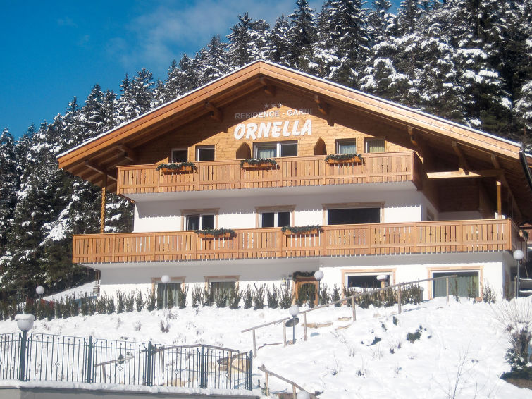 Small residence "Ornella". In the district of Pescosta 2.6 km from the centre of S. Cristina, 2 km from the centre of St. Ulrich/Ortisei, 37 km from the centre of Bolzano, in a sunny position on a slope, along the wooded area. For shared use: property with meadow, courtyard. Garden furniture, children's playground. In the house: lounge, storage room for skis, ski boot dryer. Bread roll service. Shop 1.3 km, bus stop 150 m, railway station "Bolzano" 40 km, outdoor swimming pool 2 km, indoor swimming pool 2 km. Golf course (18 hole) 20 km, mountain railway 2.7 km, ski lift 2.7 km, chair lift 3.2 km, ski bus stop 150 m. Well-known ski regions can easily be reached: Seceda 2.7 km, Saslong 3.2 km.
